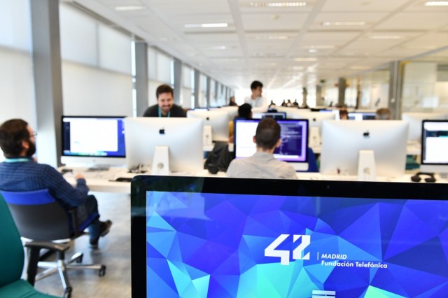 Fundación Telefónica has brought 42 to Spain, one of the most innovative programming campuses in the world: no classes, no books, no age limit, free and open 24/7. In addition to the space located in Madrid (specifically in Distrito Telefónica), there are also sites in Urduliz-Bizkaia (from 2020), Barcelona (from 2021) and Malaga (from 2022).