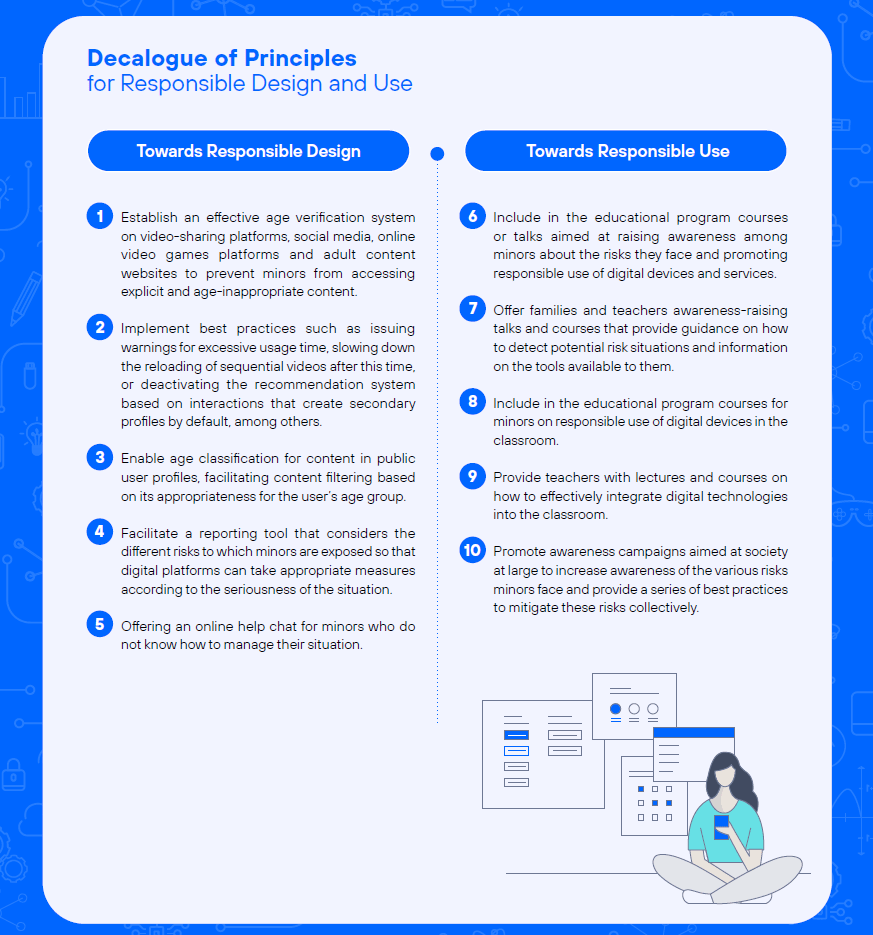 Telefónica proposes to address these challenges from the perspective of responsible design and use. With this approach, we offer a decalogue of principles to guide actions to create a safe digital environment for minors.