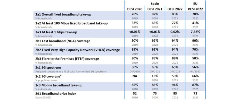 Spain is third in the European ranking, thanks to the major efforts made by operators in the deployment of fibre networks over the last few years and, more recently, in the promotion of 5G. However, in terms of mobile network performance, there are some indicators underperforming the European average.