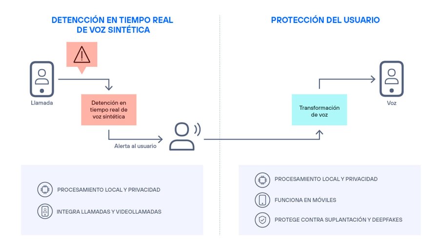 Its proposal is simple but powerful: to detect synthetic voices in real time and protect the user’s identity by transforming their voice before it leaves the device.