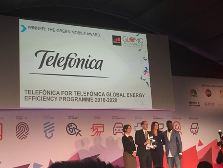 Telefónica has been awarded in the Mobile World Congress with the 2016 GSMA Global Mobile Award in the category “The Green Mobile Award” by its Telefónica Global Energy Efficiency Programme.