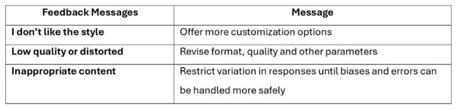 It’s essential to test your product in a variety of ways. Users enjoy experimenting and often use products in creative and unexpected manners. Models are being refined in that sense and many of them facilitate to access safety settings to ensure more careful and responsible responses. Many companies are recognizing the importance of bias control and are increasingly publishing their principles and guidelines to promote transparency and ethical AI use. Additionally, is on our hand to test and adapt prompts to use cases bringing more inclusive designs that meet the needs of all users. Control and check corner cases where the input for image generation is out of the topic or goes around sensitive content and design feedback for those cases.
