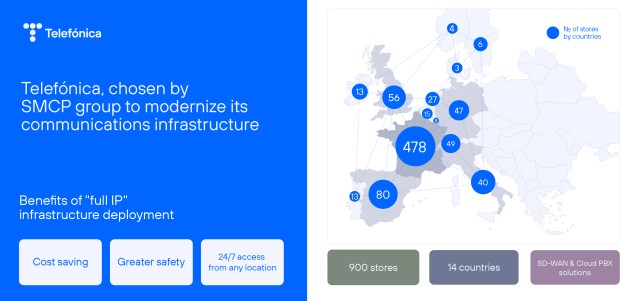 Telefónica offers a stable, global platform with extensive fibre coverage across Europe to support SMCP Group sites.
