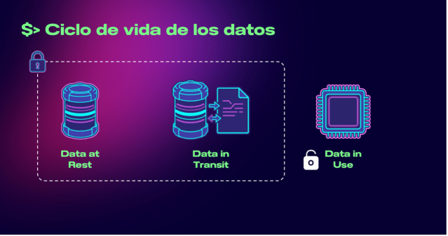 A diferencia de los datos en reposo (protegidos en bases de datos) o en tránsito (cifrados en comunicaciones), los datos en uso —aquellos que se procesan en memoria— suelen encontrarse en claro durante su ejecución.