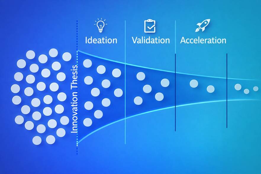 Comience con una Estrategia de innovación, conviértala a una Tesis sobre innovación, diseñe un embudo de innovación integral y use la contabilidad de la innovación para respaldar las decisiones.