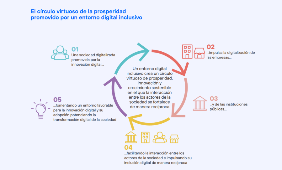 Más allá de la innovación digital, alcanzar una inclusión digital efectiva exige un enfoque holístico que fomente un entorno digital inclusivo, permitiendo que individuos, empresas e instituciones públicas aprovechen plenamente las oportunidades de la era digital.