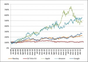 Lo cierto es que el valor de Internet está de nuevo subiendo, y está vez parece que va en serio. Han desaparecido los modelos de negocio disparatados y las asunciones absurdas sobre los “clicks” como inductor de ingresos. Esta vez, los negocios de Internet parecen saber cómo crear valor, y cómo monetizarlo. Y ello se traslada en un continuo incremento en el valor de las acciones, especialmente de los ejemplos más relevantes citados en el párrafo anterior.