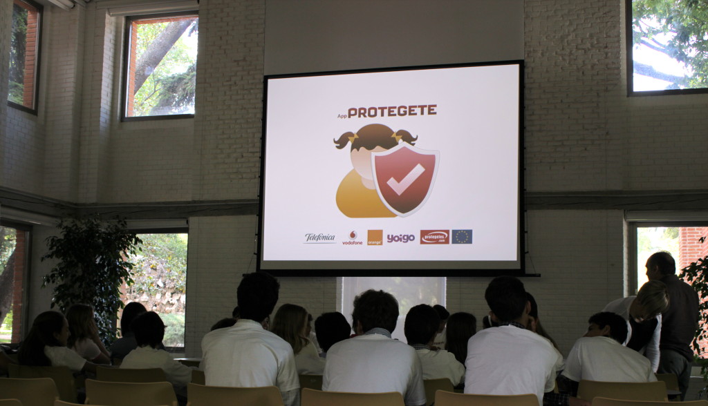 Un grupo de alumnos y alumnas de 12 a 15 años han presentado hoy en Madrid la nueva aplicación “anti-acoso” a través de los smartphones: PROTÉGETE, desarrollada por el Centro de Seguridad para los Menores en Internet PROTÉGELES.COM, en colaboración con las principales operadoras de telecomunicaciones: Telefónica, Vodafone, Orange y Yoigo.