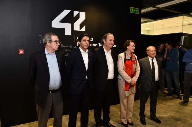 Madrid, 26 de septiembre de 2019.- Fundación Telefónica ha presentado hoy 42 Madrid, el campus de programación más revolucionario y pionero en España, ubicado en el corazón de Telefónica, en el edificio Norte 3 de las Tablas de Madrid. Con 5.000 m2 tiene capacidad para 900 alumnos y ha sido inaugurado por la ministra de Trabajo, Migraciones y Seguridad Social, Magdalena Valerio; el embajador de Francia en España, Jean-Michel Casa; el presidente de Telefónica, José María Álvarez-Pallete; el cofundador de 42 y Grupo Oliad/Free y vicepresidente Groupe Iliad, Xavier Niel; el presidente de Fundación Telefónica, César Alierta; la directora general de Fundación Telefónica, Carmen Morenés y la directora general de la Red 42, Sophie Viger. Después de las intervenciones, las autoridades han recorrido las instalaciones, donde a su paso por los diferentes espacios han podido charlar con los candidatos e intercambiar experiencias.