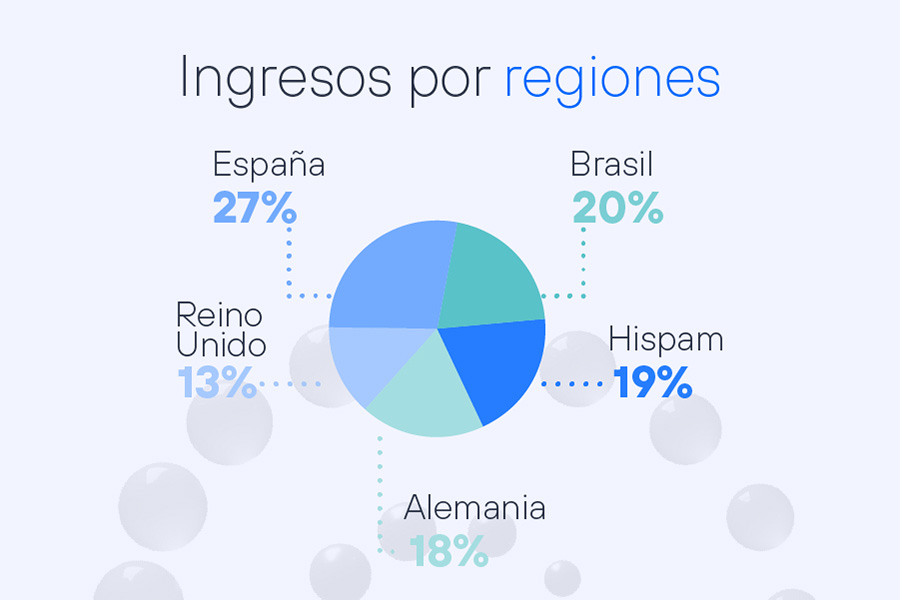El incremento de los ingresos en el segundo trimestre del año ha hecho posible que en el acumulado de los seis primeros meses las ventas hayan crecido hasta los 20.178 millones de euros, un 3,7% más que en la primera mitad de 2022. Por mercados, el 27% de los ingresos ha procedido de España; el 20% de Brasil; el 19% de Hispam; el 18% de Alemania; y el 13% de Reino Unido.