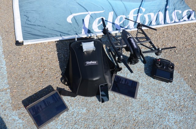 - Con una mochila LTE Nano que permite desplegar en cuestión de minutos una red de comunicaciones 4G a la que se ha conectado un dron con capacidad para trasmitir video mediante LTE y varios dispositivos.