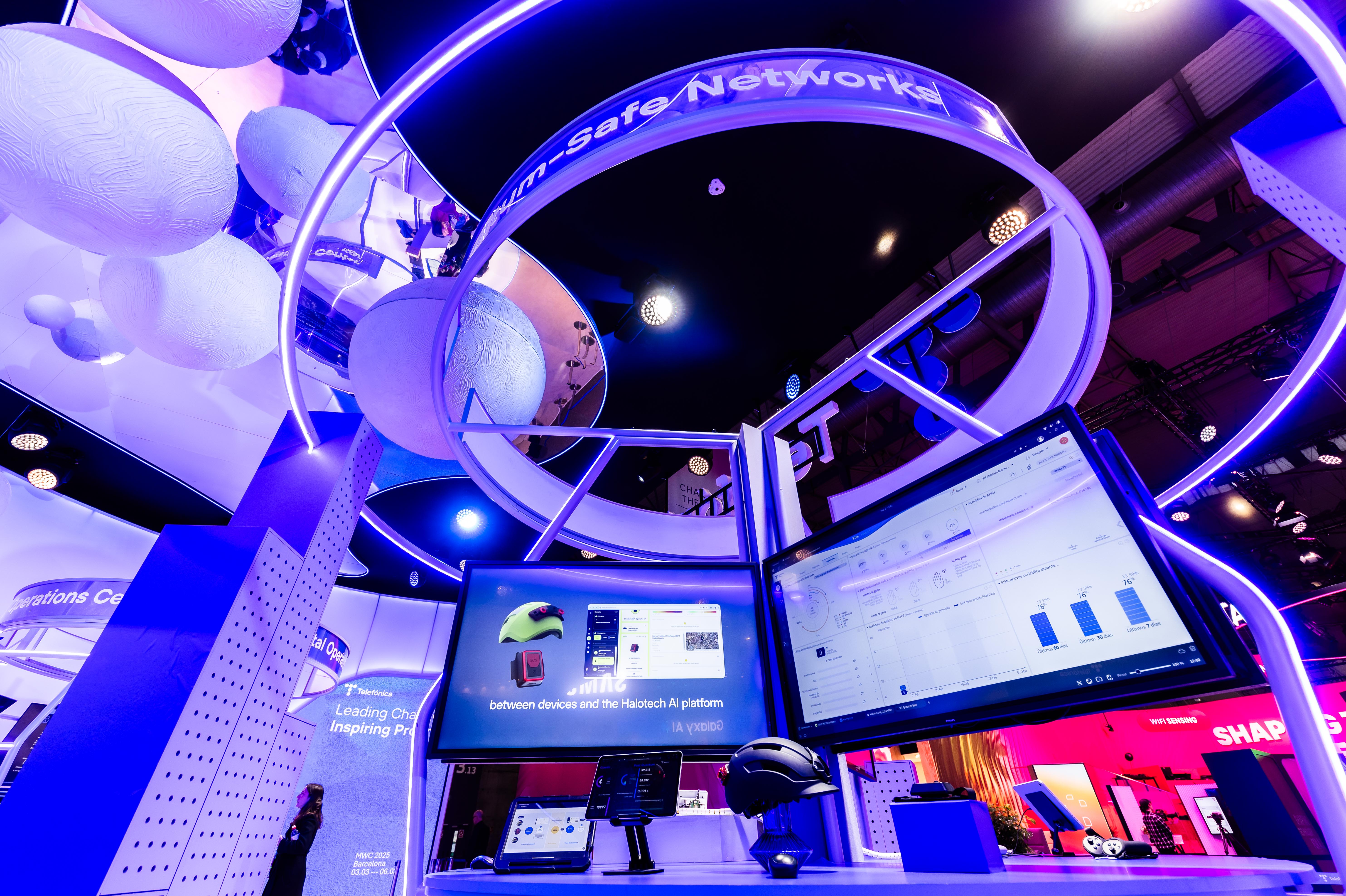 El tercer caso de uso que muestra la demo ‘Quantum-Safe Networks’ en el stand de Telefónica en el MWC es el de cifrado post-cuántico aplicado a la conectividad de dispositivos IoT en entornos críticos. Como ejemplo, se muestran la comunicación entre dispositivos inteligentes de Halotech, en concreto los cascos conectados Halo I y el brazalete inteligente Halo III.