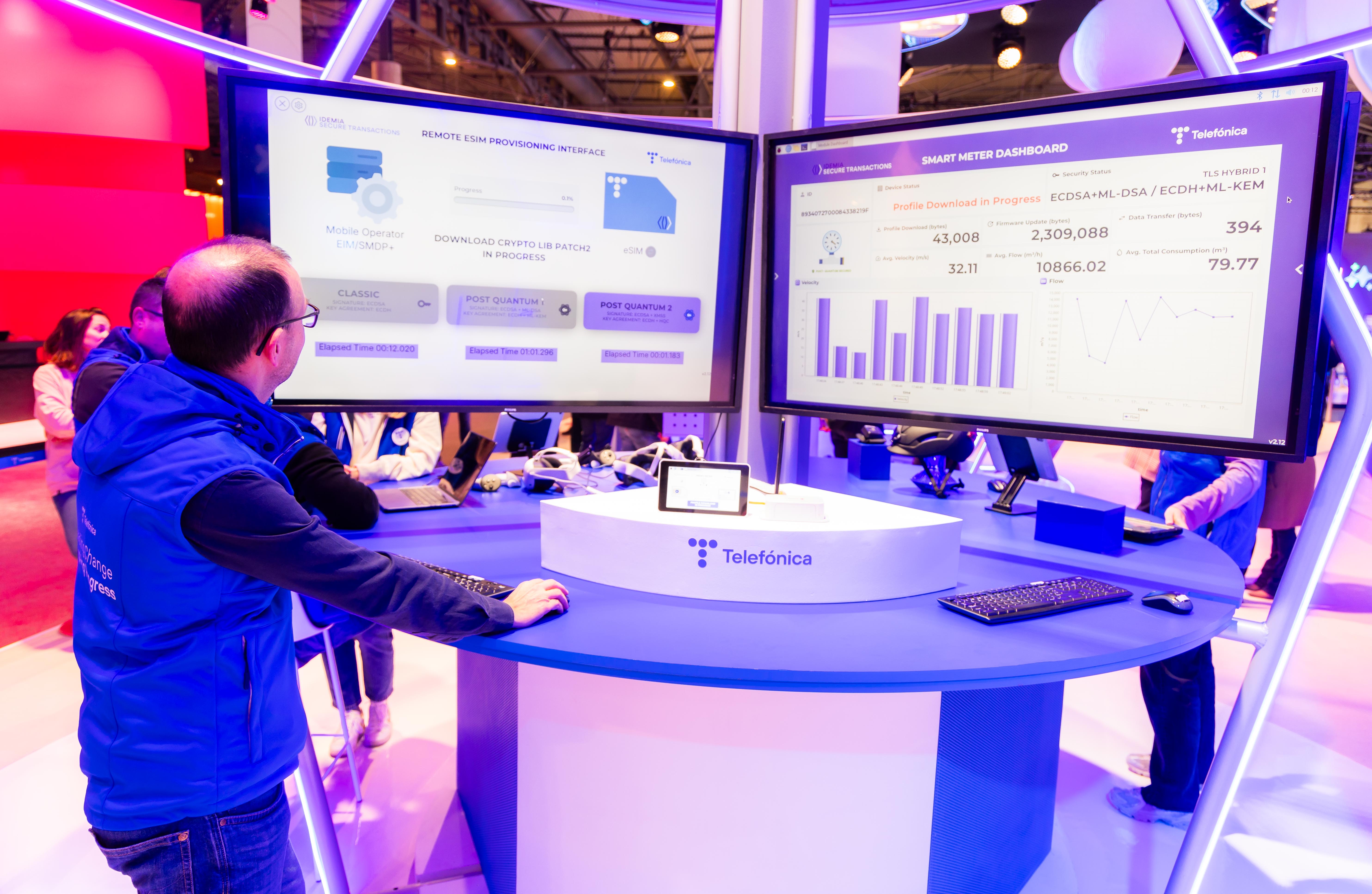 Telefónica presenta en el Mobile World Congress (MWC) que se celebra desde hoy hasta el jueves 6 de marzo en Barcelona una demo llamada ‘Quantum-Safe Networks’, una propuesta con tres casos de uso diseñada para proteger las comunicaciones y datos críticos frente a los desafíos que presenta la computación cuántica. ‘Quantum-Safe Netwoks’ no solo se anticipa a las amenazas futuras, sino que también refuerza la seguridad actual con una capa extra para prepararse para los retos que conllevará la irrupción de los futuros computadores cuánticos.