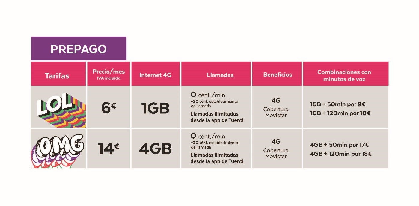 - LOL (Lot of Laughs!), que por 6 euros al mes (IVA incluido) incluye 1 GB.